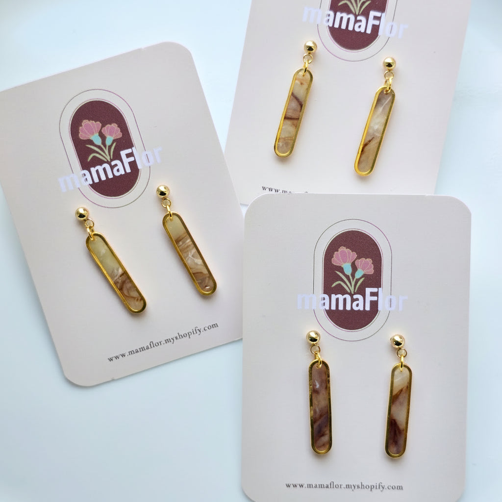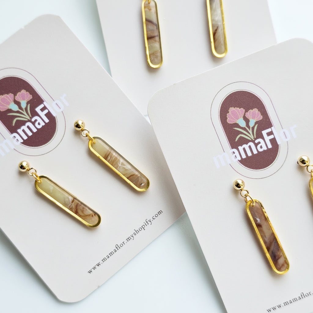 Eliza Dangle Earrings in Neutral Stone marbling
