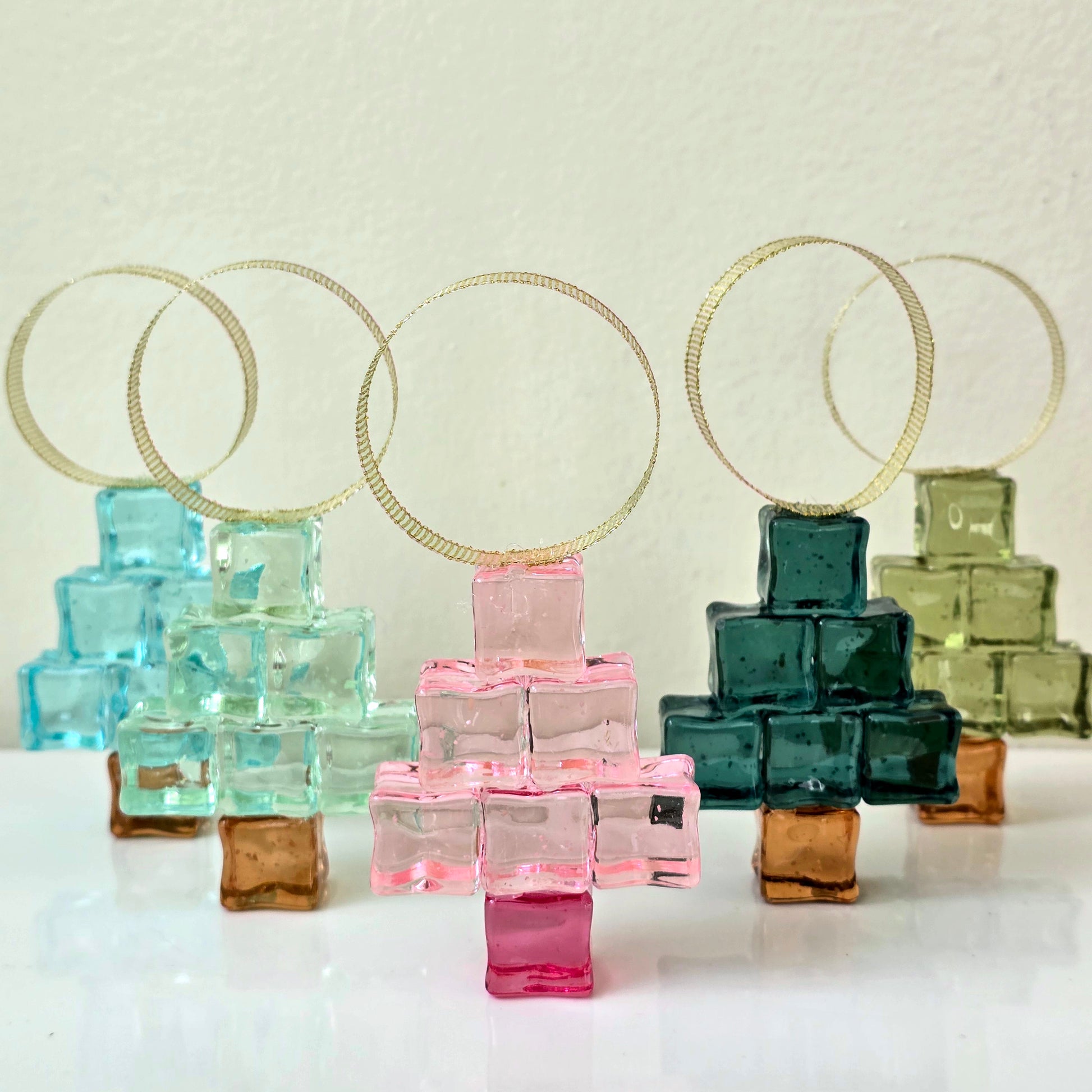 'Tis the season to add some fun to your decor! Our handcrafted Pixel Tree Ornaments feature glow-in-the-dark acrylic cubes and a festive gold ribbon for hanging. Get ready to light up your Christmas tree (literally)!